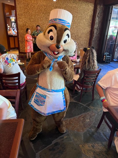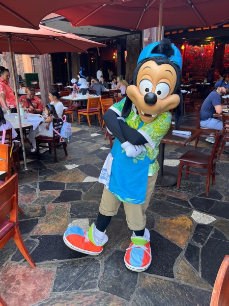Het hoogtepunt van het ontbijt is natuurlijk de karakterervaring. Terwijl je geniet van je maaltijd, komen geliefde Disney-figuren in tropische outfits langs je tafel voor foto’s, handtekeningen en interactie met de kinderen. Gasten kunnen onder andere Mickey Mouse, Minnie Mouse, Goofy en Pluto verwachten, allemaal gekleed in kleurrijke aloha-shirts en bloemenkransen.