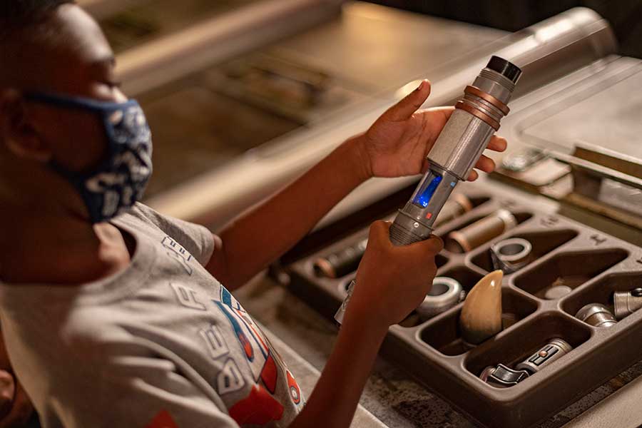 May the force be with you, terwijl je je eigen lichtzwaard bouwt in Savi's Workshop – Handbuilt Lightsabers. Zodra je lichtzwaard af is (aankoop vereist), ben je uitgerust voor elke gewaagde onderneming tegen de First Order!