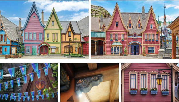 Wil je een land in Noorse stijl bouwen in Hong Kong? Geen enkele gletsjer werd onberoerd gelaten bij de ontwikkeling van het landschap, de verbluffende architectuur, het design, de kleding en de keuken van het land. Van de bouwstijl dragestil (drakenstijl) tot de asymmetrische architectuur van Balestrand en zelfs rosemaling bloemendecoratieve schilderijen, je wordt onmiddellijk getransporteerd van de met wolkenkrabbers gevulde skyline van Hong Kong naar het Scandinavisch geïnspireerde Arendelle.