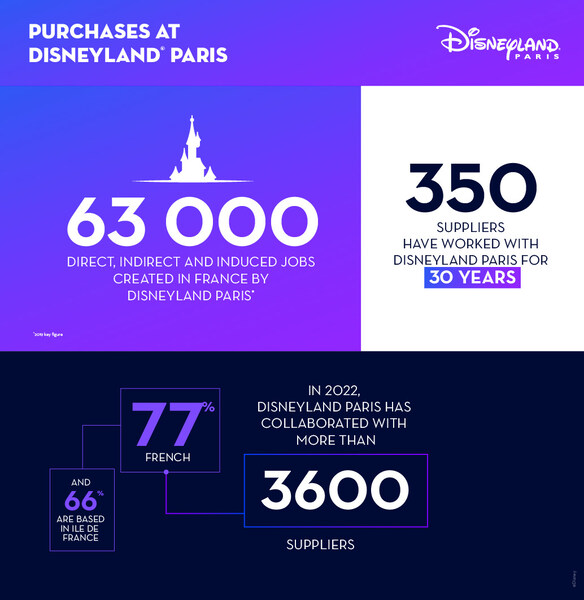 Vandaag de dag is het bedrijf langdurige samenwerkingen aangegaan met meer dan 2.800 Franse leveranciers, waaronder meer dan 1.800 in de regio Ile-de-France. Meer dan 350 van die leveranciers hebben hun expertise en knowhow gedurende 30 jaar aan het resort bijgedragen en nog eens 750 gedurende minstens 20 jaar.