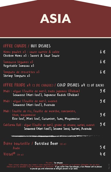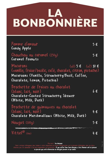 Er zijn dit jaar 3 nieuwe châlets om te ontdekken: "Asia", "En cas de p'tites faims" en "La Bonbonnière". Bekijk hieronder alle menu's van het festival in het Walt Disney Studios Park.