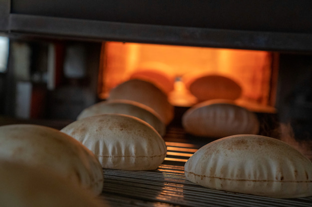 Het duurt 8 seconden op 800 graden om pitabroodjes te bakken.