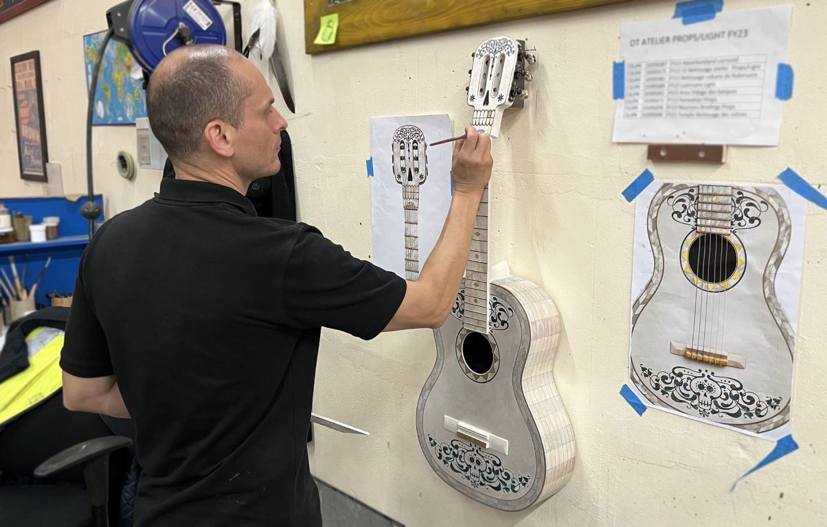 Achter de schermen zijn Disney Imagineers hard aan het werk met de teams van Disneyland Paris en Pixar Animation Studios om gasten onder te dompelen in de geliefde Pixar-film Coco. Meer dan vijftig rekwisieten en accessoires worden momenteel voorbereid in onze centrale werkplaatsen, waar de talenten van onze Cast Members echt schitteren.