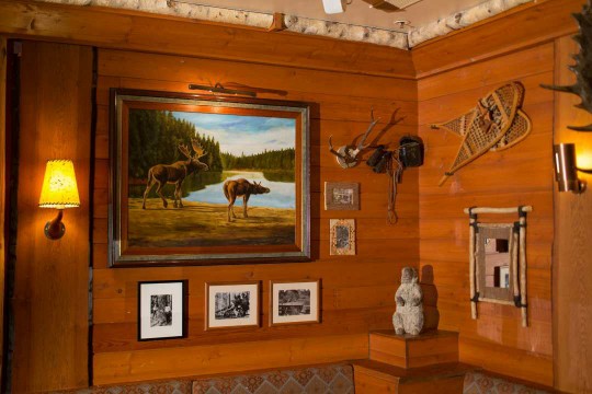 Zodra de gasten in Disney Sequoia Lodge aankomen, zet het prachtige fresco bij de receptie de sfeer voor hun reis. Het toont de verschillende seizoenen in de nationale parken van de V.S., met besneeuwde bergen die de winter symboliseren. Terwijl u door tijd en ruimte reist, neemt u even de tijd om Mount Rushmore te bewonderen. Het blijkt dat naast de vier Amerikaanse presidenten wier gezichten in de bergwand zijn uitgehouwen, er nog een vijfde historische figuur op staat. Zou dat niet onze goede vriend Mickey zijn?
