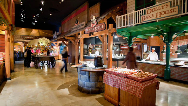 Wanneer je in de ochtend voor je vertrek naar de Disney Parken graag een uitgebreid continentaal ontbijt wilt nuttigen, dan ben je bij Chuck Wagon Café op de juiste plaats. Dit all-you-can-eat ontbijt is namelijk voorzien van diverse broodjes, croissants, warme gerechten zoals roerei, melkproducten, cornflakes en meer. Voor ieder staat er wel wat lekkers op het menu. Het ontbijt is vooraf bij het hotelverblijf bij te boeken doormiddel van het toevoegen van één van de maaltijdopties. Indien dit niet gedaan is kun je altijd ter plaatse nog van het ontbijt gebruik maken en betalen bij binnenkomst van het restaurant. Reserveren is niet nodig, echter worden er wel kaartjes met tijden gebruikt om zo goed mogelijk de drukte te verspreiden. Deze kaartjes ontvang je bij het inchecken, wanneer je het ontbijt vooraf hebt bijgeboekt.