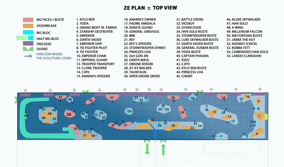 30 kunstenaars uit 12 verschillende landen hadden de missie om het universum van Star Wars te creëren uit 500 ton ijs in circa 4 weken. De schat aan reusachtige sculpturen, van 2 tot 6 meter hoog, werd bewaard onder het dak van een gigantische icebox van 8.000 m³ naast het station van Luik.