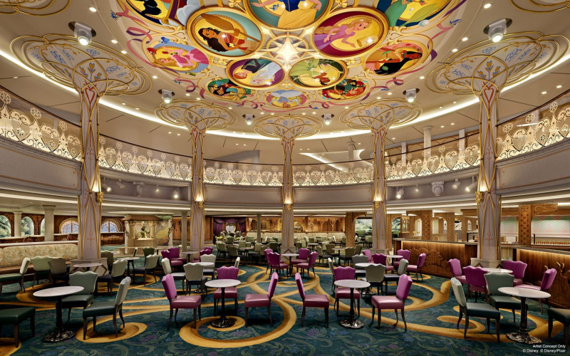 Elke gast zal dineren in een van de twee entertainmentrestaurants van het schip, waar ze interacties kunnen verwachten met Mickey Mouse, Minnie Mouse, Donald Duck en Daisy Duck. Navigator's Club zal de prestigieuze maritieme traditie van “captain’s table” diners eren, terwijl de Hollywood Spotlight Club de glamour van het gouden tijdperk van Hollywood oproept.