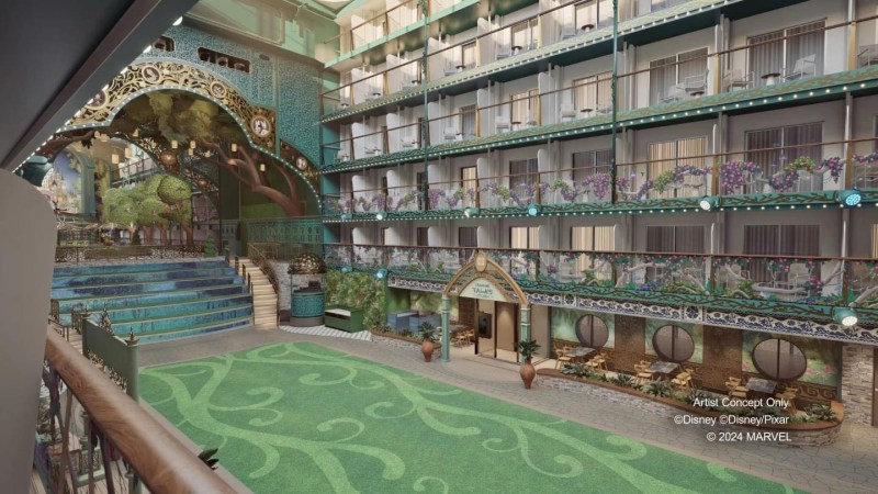 Het kloppend hart van het schip is een indrukwekkende, drie dekken hoge entertainmentzone met een kasteel-achtige setting. Hier komen klassieke Disney-verhalen tot leven met shows, muziek en interactieve momenten voor het hele gezin.