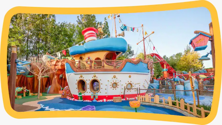 Een vernieuwde versie van Donald's Boat in Donald's Duck Pond, waar gasten gebruik van kunnen maken via de interactieve patrijspoorten op de boot.
