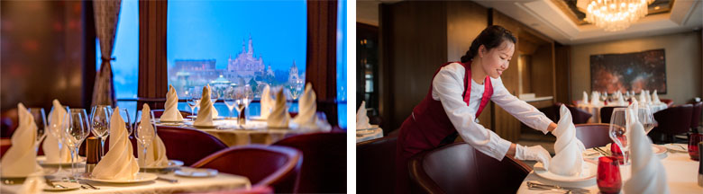 Dit restaurant is het meest luxueuze restaurant binnen het Shanghai Disney Resort. Een diner in restaurant Aurora is daarom een bijzondere beleving. Er wordt daarom ook verwacht dat je je gepast kleed, dus bij voorkeur geen slippers, sandalen, sportkleding of mouwloze shirts.