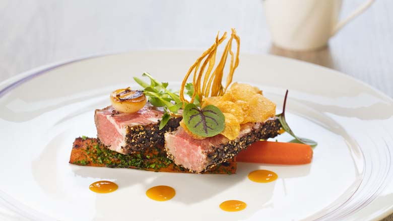 Diner begint met een ongekende selectie van voorgerechten, met bijvoorbeeld een Salade Caprese of Thais geïnspireerde bouillon met verse tijgergarnalen, voordat je verder gaat met een hoofdgerecht zoals gepocheerde Canadese kreeft of ossenhaas.