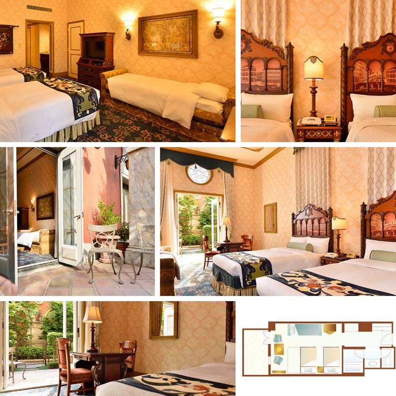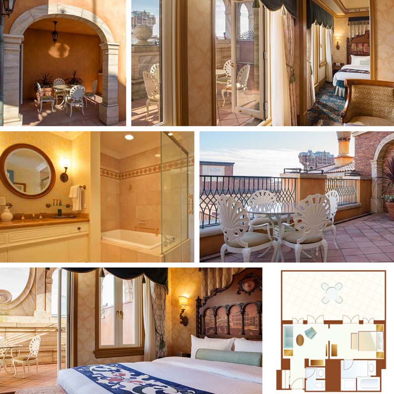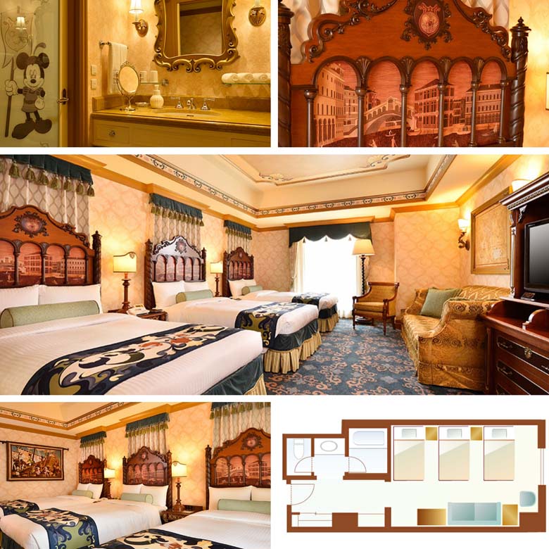 De Venetië zijde van het hotel kijkt uit op de Palazzo Canals, waar het net als in Venetië mogelijk is om rond te varen in gondels. Deze hotelzijde biedt een drietal verschillende kamertypes in de standaard categorie. Daarnaast zijn er Terraskamers die onder het luxe kamertype vallen, waardoor gasten die in kamers van dit type verblijven extra services en voorzieningen tot hun beschikking hebben.