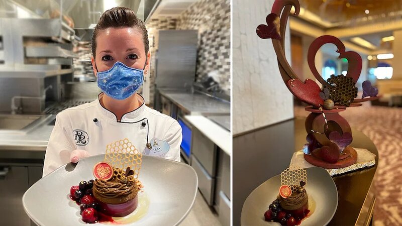 Alexis "Lexy" Ross, banketbakker in Disney's Riviera Resort, geniet ervan om rond Valentijn "extra zorg en genegenheid" in haar verrukkelijke desserts te kunnen stoppen. "Ik vind het altijd leuk om mezelf uit te dagen om elk seizoen of elke feestdag met iets nieuws op de proppen te komen," zei ze. Enkele van haar meest recente liefdevol ontworpen desserts zijn onder andere een 'bee mine'-dessert en een mini dessert-chocoladedoos compleet met een heerlijke brownie, macaron en aardbeien met een laagje chocolade, allemaal delicaat geplaatst in een eetbare chocoladeschelp.