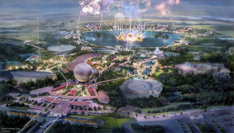De concept art toont het weelderige landschap en het middelpunt van de stromende waterpartij. In de onderstaande concept art kunnen we springend water zien dat op magische wijze tot leven komt voor de gasten. Hoewel we verwachten dat het springwater vergelijkbaar is met wat gasten momenteel kunnen vinden in de buurt van het Imagination-paviljoen, wordt Journey of Water een aparte ervaring op een andere locatie.