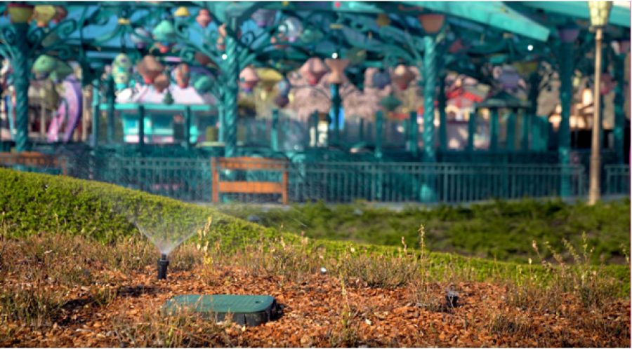 Landschapsteams maken gebruik van verantwoorde bewateringspraktijken om overmatig waterverbruik te voorkomen en blijven werken aan het verminderen van het waterverbruik door technologische systemen te verbeteren en zorgvuldig de te planten soorten planten en bloemen te selecteren.