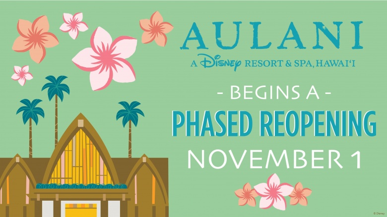 Ook Hawaii ontkomt niet aan het Covid-19 virus, waardoor ook Aulani, het daar gevestigde Disney resort, haar gasten niet meer kan verwelkomen vanaf 24 maart 2020. Hiermee was het laatste Disney resort gesloten. Eind september volgt goed nieuws, want Aulani verwacht vanaf 1 november 2020 weer gasten te mogen verwelkomen. Sindsdien verwelkomt het resort op Hawaii, na 222 dagen gesloten te zijn geweest, weer haar gasten.