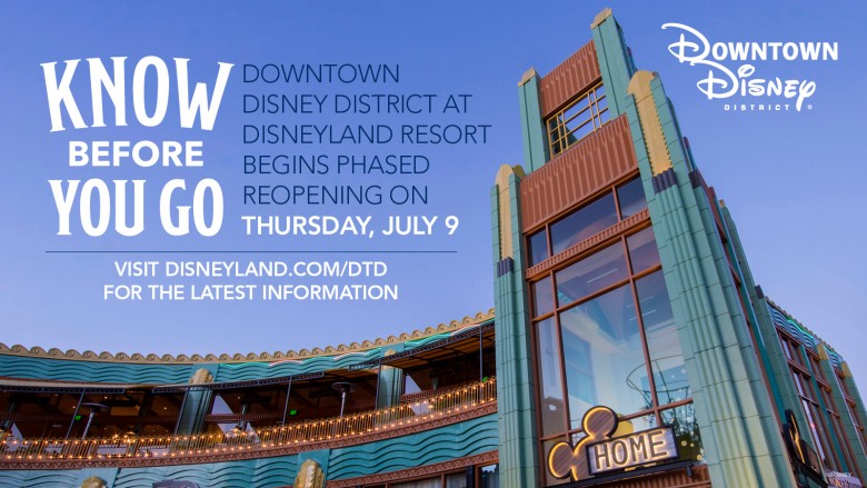 Op 12 maart 2020 deelt Disney Parks het bericht dat, ondanks dat er geen gevallen van Covid-19 waren geconstateerd in het resort, maar vanwege de aangepaste overheidsregels, beide Disney parken in Anaheim hun deuren uit voorzorg sluiten op 14 maart 2020. De hotels van het Disneyland Resort sluiten twee dagen later, zodat gasten de tijd krijgen om hun terugreis te regelen. Het Downtown Disney District blijft vooralsnog open. Uiteindelijk wordt besloten om vanaf 17 maart 2020 alle door winkels en restaurants van Disney gesloten te houden in het Downtown Disney District.