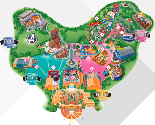 Cars Road Trip dat deel uitmaakt van het Toon Studio gebied staat ook op het plattegrond. Neem nu zelf een kijkje in de nieuwe online brochure: Disneyland Paris Brochure 2021 UK