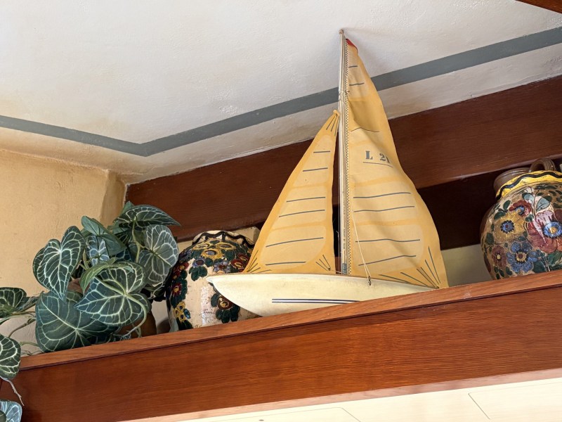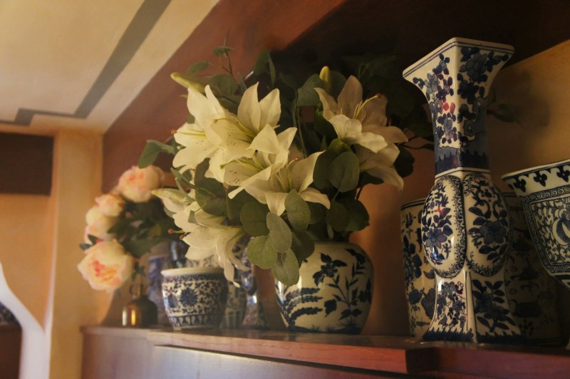 In de winkel vinden bezoekers prachtige Oosterse vazen, destijds bijzonder populair in Californië, evenals lelies, pioenrozen en zachtgekleurde rozen. Daarnaast zijn er klassieke bloemistenaccessoires zoals terracotta potten en gieters te bewonderen. Een opvallende poster over de “taal van bloemen” siert de muur, terwijl miniatuur houten zeilbootjes bovenop enkele planken een speelse verwijzing vormen naar de recreatie in parken van de vorige eeuw — en zo de band met Adventure Way versterken.