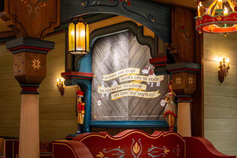 Overal in de boutique zijn kleine verwijzingen en decoratieve details te vinden. Zo staat er een knuffelpuffin, een speeltje dat Elsa als kind koesterde. Ook is er een tin soldaat te zien, een subtiele hommage aan het verhaal The Steadfast Tin Soldier van Hans Christian Andersen, de auteur van The Snow Queen — het sprookje dat uiteindelijk de inspiratie vormde voor de film Frozen.