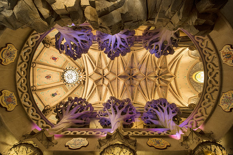Op de eerste verdieping bevindt zich de Galerie de la Belle au Bois Dormant die het verhaal van de Disney-klassieker weergeeft. U kunt er negen authentieke d'Aubusson-wandtapijten zien die speciaal voor ons park met de hand zijn gemaakt, evenals negen glas in loodramen die zijn gemaakt door Paul Chapman, die uit zijn pensionering is teruggekomen nadat hij had geholpen bij de restauratie van de glas in loodramen van de Notre Dame kathedraal.
