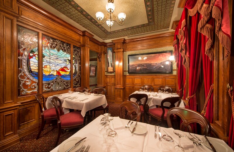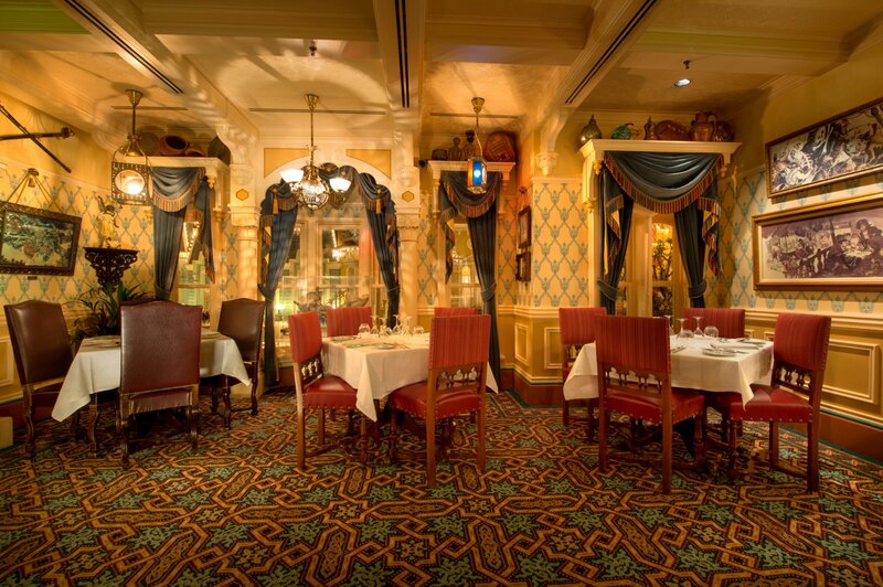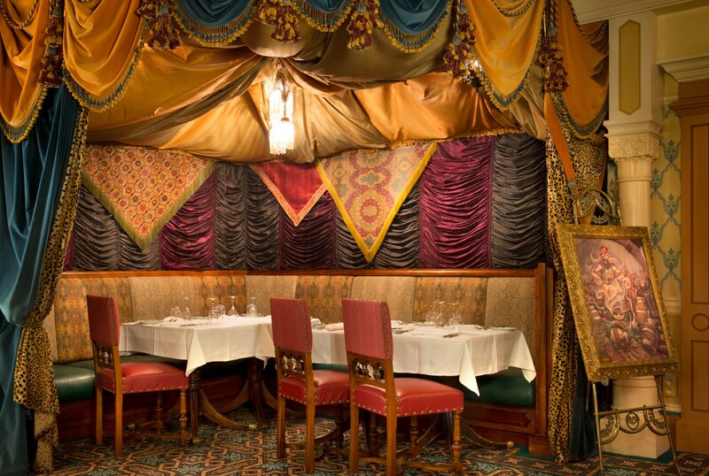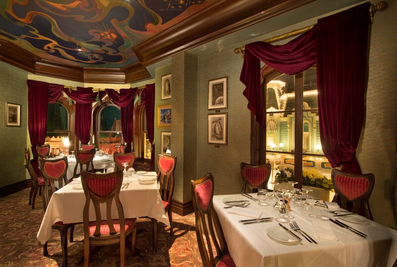 De verschillende kamers zijn ontworpen op basis van de thema's van Disneyland Paris, alsof ze gezien werden door de ogen van een architect uit het Victoriaanse tijdperk. Zo is de stijl van de Adventureland-zaal sterk beïnvloed door de oriëntalistische beweging van het einde van de 19e eeuw, is die van Fantasyland geïnspireerd op de neogotische stijl en is die van Frontierland een knipoog naar het werk van de Amerikaanse kunstenaar Frederic Sackrider Remington, die beroemd is om zijn bronzen beelden die scènes uit het Oude Westen uitbeelden. De eetzaal die Discoveryland eer aandoet, is een eerbetoon aan het Art Nouveau-werk van Alphonse Mucha en Hector Guimard, en aan de roman van Jules Verne, zoals Walt Disney die opnieuw heeft beleefd. In deze kamer zijn de patronen van het vasttapijt - dat aan de oceaan doet denken - in perfecte harmonie met de hemelse arabesken van het plafond, aangepast om de Art Nouveau-stijl te weerspiegelen. De open haard is een meesterwerk op zich. Hij is ontworpen door Eddie Scotto, die zich liet inspireren door de schouw die Alphonse Mucha ontwierp voor de juwelierszaak Fouquet en die nu te zien is in het Carnavalet-museum in Parijs. Het is gemaakt van walnotenhout uit het regenwoud van de Amazone en wordt bekroond door een gestileerde armillosfeer (een model van de hemelbol) die doet denken aan de roman Van de aarde naar de maan, waarin een schaalmodel van de Nautilus, ontworpen door Tom Sherman - de art director van de attractie Les Mystères du Nautilus - is opgehangen.