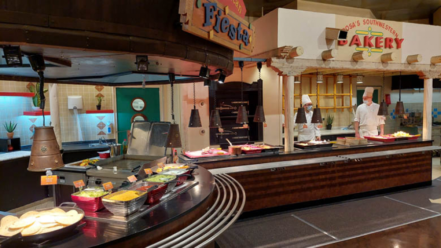 Wanneer je ’s Avonds na een drukke dag in de Disney Parken via de Route 66 terugkeert naar je kamer, kun je bij La Cantina terecht voor een heerlijk uitgebreid all-you-can-eat buffet. Hier vind je typische Tex-Mex geïnspireerde gerechten, waaronder fajita’s en tortilla chips met warme cheddarsaus. Het buffet heeft gerechten die geschikt zijn voor alle leeftijden, maar voor de jonge gasten zijn er enkele speciale kindergerechten, waardoor ieder wel wat naar zijn smaak zal vinden. Voor wie frisdrank bij zijn menu neemt is er de mogelijkheid om te kiezen uit een zeer uitgebreide selectie aan frisdranken, het restaurant beschikt namelijk over Coca-Cola Freestyle machines, waarbij je zelf je gewenste smaken kunt combineren. Het dinerbuffet is geschikt voor zowel de standaard als plus maaltijdvouchers. Wanneer je een speciale gelegenheid wilt vieren, is het ook mogelijk om in dit restaurant een verjaardagstaart te bestellen.