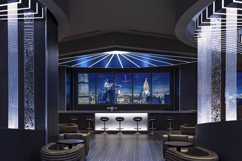 Ook al bevindt deze bar zich niet op de bovenste verdieping van het hotel, door de digitale ramen heb je toch een adembenemend uitzicht over New York en de welbekende Avengers-toren. Tussendoor kun je ook nog eens een glimp opvangen van een superheld die voorbijvliegt, terwijl jij geniet van een overheerlijk drankje in deze hippe bar en de zon langzaam ondergaat.