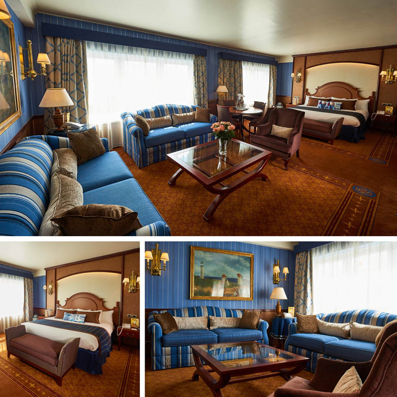 Disney Newport Bay Club beschikt over 15 suites, verdeeld in vijf verschillende soorten. Deze suites vallen uiteraard allemaal onder de service van de Compass Club, ondanks dat een aantal suites niet gelegen zijn op de twee bovenste verdiepingen van het hotel. Dit heeft echter geen invloed op de voordelen en extra’s die bij deze suites horen. Iedere suite is ingericht in een unieke stijl geïnspireerd door een nautisch thema. Niet alle suites zijn online te boeken. Voor deze specifieke suites is het noodzakelijk om de speciale reserveringslijn voor suites te bellen, die te bereiken is via het telefoonnummer +33 1 60 30 60 90 (Internationaal beltarief). De gasten die verblijven in de suites beschikken over dezelfde extra’s als de gasten met een Compass Club kamer. Hieronder is een overzicht van de verschillende suites van het hotel.