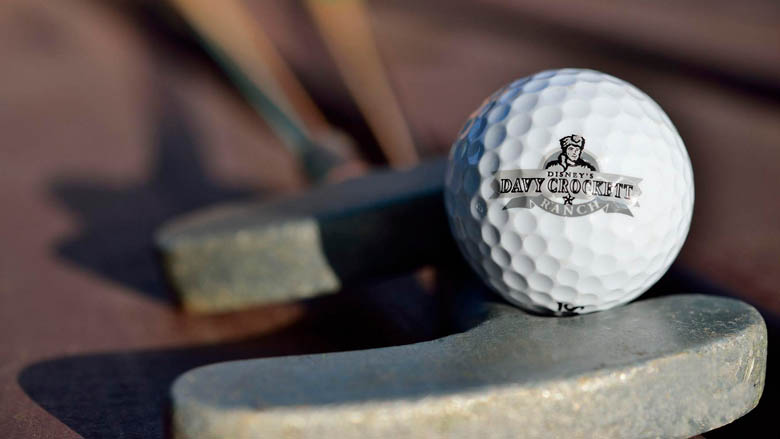 Voor de professionele golfers is er Golf Disneyland Paris, maar wie graag even een balletje slaat op miniformaat kan terecht bij de minigolf van Disney Davy Crockett Ranch. Deze activiteit is, afhankelijk van de weersomstandigheden, dagelijks beschikbaar. De golfstick en golfbal zijn verkrijgbaar bij de Alamo Trading Post en de huurprijs is € 2,50 per persoon per ronde (prijswijziging voorbehouden).