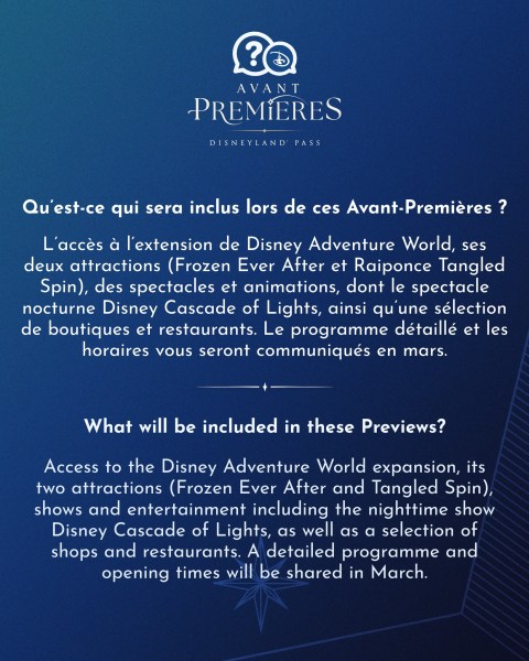 Toegang tot de previews is alleen mogelijk op reservering. Disneyland Paris zal binnenkort meer informatie delen over: