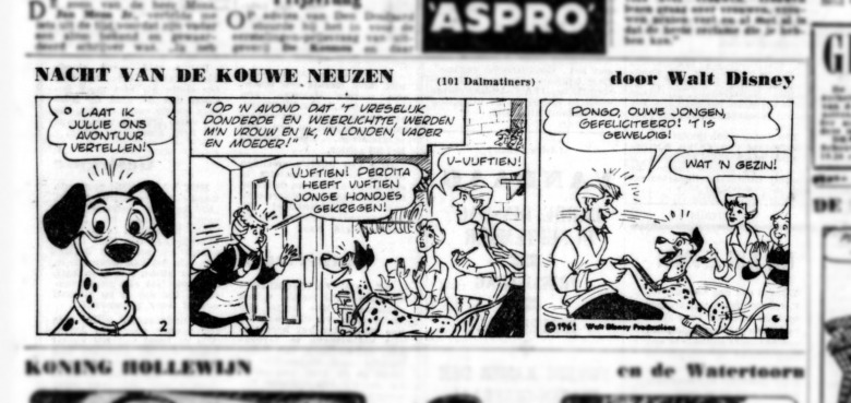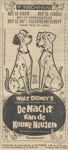 Met Pasen, in april 1963, verscheen De Nacht van de Kouwe Neuzen in de Nederlandse bioscopen. Hoewel de film tegenwoordig bekend staat als 101 Dalmatiërs, was er bij de eerste release gekozen om de film een andere Nederlandstalige titel te geven. Ondanks dat de film een Nederlandstalige titel kreeg, was dit de eerste Disney Classic die in de originele versie verscheen, uiteraard wel met Nederlandse ondertiteling. Voorafgaand aan de bioscooprelease verscheen er in De Telegraaf een dagelijkse krantenstrip van de film, van 17 september 1962 tot en met 15 november 1962.