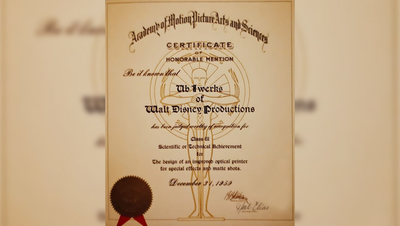 Dit jaar ontving Ub Iwerks een Technical Award voor zijn ontwerp van een verbeterde optische printer voor speciale effecten en matte shots. Ub Iwerks’ geschiedenis gaat ver terug tot het begin van de eerste tekenfilms. Zijn passie lag vooral bij de camera’s en de speciale effecten. De printer waar hij deze onderscheiding voor ontving, was gebruikt bij films als Song of the South en Melody Time, waarbij een speelfilm gecombineerd werd met animaties.